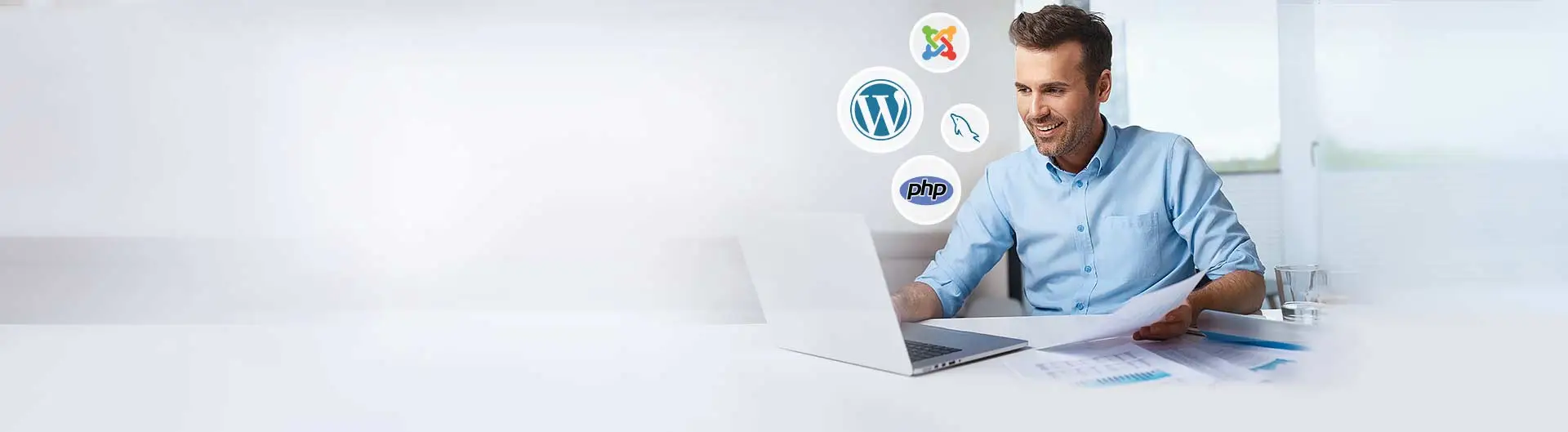 Installation de Wordpress en 1 clic. Configuration du CMS, des emails, PHP et base MySQL simplifiée.